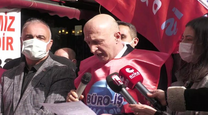 Birle?ik Kamu -??'e ba?l? Büro ?? Sendikas? Ba?kan? Alay Hamzaçebi, Ankara'daki Genel Merkez binas? önünde, memur maa??na yap?lan zamm?n yetersiz oldu?unu savunarak “Memura en az 2 bin 500 TL seyyanen zam yap?lmas? gerekmektedir. Asgari ücret vergi d??? b?rak?lmal?, bu tutar emekçilerin gelir vergisinden stisna edilmeli, sözle?melilere kadro verilmeli, 3600 ek gösterge sözü yerine getirilmelidir” dedi.
