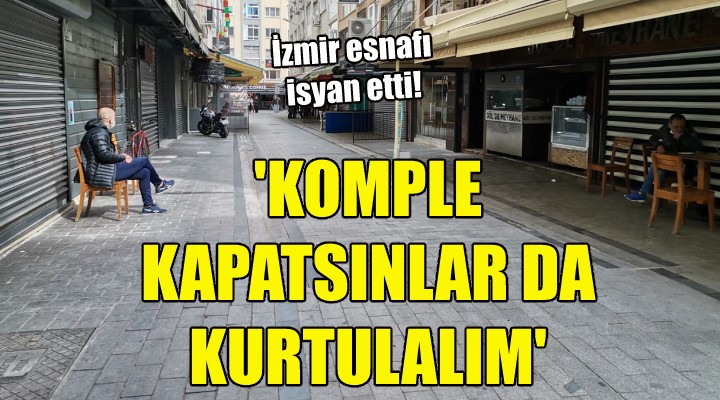 SONKALE?ZM?R-Koronavirüsle mücadele kapsam?nda getirilen ek tedbirlerle çal??ma saatleri azalan ve sadece paket servise kalan restoran, kafe ve bar i?letmecileri, duruma tepkili. ?zmir'in Konak ?lçesi'ne ba?l? Alsancak semtinde esnaf?n bir k?sm?, Ramazan ay? ile ba?layan k?smi kapanma karar?n?n ard?ndan kap?s?na kilit vurdu. Sadece paket servisle personel, kira ve fatura giderlerini kar??layamad?klar?n? belirten esnaf, "Bitik durumday?z. Sonumuz ne olacak bilmiyoruz. Art?k i? yerlerimizi komple kapats?nlar da kurtulal?m" diye hükümete tepki gösterdi.