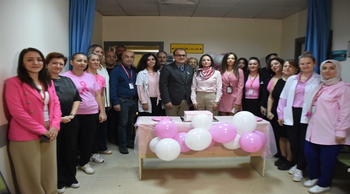 ?zmir Katip Çelebi Üniversitesi 'Meme Kanseri Fark?ndal?k Ay?' ve tüm dünyada yürütülen fark?ndal?k ve bilinçlendirme etkinlikleri kapsam?nda (?KÇÜ) Atatürk E?itim ve Ara?t?rma Hastanesi'nde vatanda?lara pembe kurdele tak?l?p 'Erken te?his hayat kurtar?r' yaz?l? pasta kesildi. Hastanede kurulan stand? ziyaret edenlere bilgilendirici bro?ür da??t?ld?. ?zmir Atatürk E?itim ve Ara?t?rma Hastanesi Ba?hekimi Prof. Dr. Bülent Çal?k, Dünya Sa?l?k Örgütü (DSÖ) verilerine göre meme kanserinin her 8 kad?ndan birinde görülen bir hastal?k oldu?una dikkat çekip, erken tan?n?n önemini vurgulad?. Hastanelerinde meme kanserine erken tan? konulmas? için tüm t?bbi uygulamalar?n gerçekle?tirildi?ini ifade eden Dr. Çal?k, Meme kanseri erken te?his edildi?inde tedavisi oldukça ba?ar?l? olan bir hastal?kt?r. O nedenle erken te?hise önem veriyoruz. Hastane olarak meme kanseri hastal???n?n tedavisinde her türlü olana?a sahibiz. 40 ya??n? geçmi? özellikle bayanlara tüm mamografi taramalar?na gitmelerini tavsiye ediyoruz. Kendi kendilerine meme muayenelerini öneriyoruz dedi.