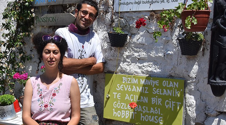 ?stanbul'da ressam olan Murat Asilcan ile 'yol arkada??m' dedi?i sinema televizyon bölümü mezunu Sinem Can, 4 y?l önce sokaklarda ya?ayan ya da maddi durumu iyi olmayan çocuklar için Balat'ta Hobbit House'u kurdu. Burada çocuklara bir yandan yemek verip kar?nlar?n? doyuran çift, yine kurduklar? i? yerine gelen mü?terilerin yard?mlar?yla ald?klar? ya da ba???lanan ikinci el k?yafetlerle, 300'den fazla çocu?a destek oldu, binlercesini kitap, oyuncak ve k?rtasiye ürünleriyle bulu?turdu. ?stanbul'da kurduklar? Hobbit House'u, birlikte çal??t?klar? arkada?lar?na b?rakan Sinem Can ve Murat Asilcan, kendi deyimleriyle çantalar?n? omuzlay?p, yine bir ütopyan?n pe?inden yola ç?kt?. ?zmir'e gelen çift Urla ilçesine ba?l? Barbaros Mahallesi'ne geldi. Mahalle sakinlerinin de destek verdi?i Sinem Can ve Murat Asilcan, 8 ay önce bir köy evi kiralad?. Bu evin tadilat?n? yapan çift, ikinci el ürünlerin ya da hurdac?lardaki malzemelerin geri dönü?ümlerini sa?lay?p, onlardan masa sandalye yatak, oturma alanlar? yapt?, kendilerine yepyeni bir ya?am kurdu.