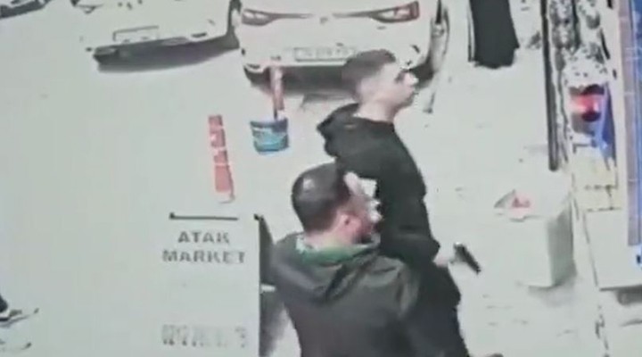 Araçtan inen 4 genç, tehditler savurmaya ba?lad?. Baba ise o?lunu kuca??na alarak markete s???nd?. Ard?ndan magandalar, baban?n markete girdi?ini görünce eline silah alarak pe?inden gitti.