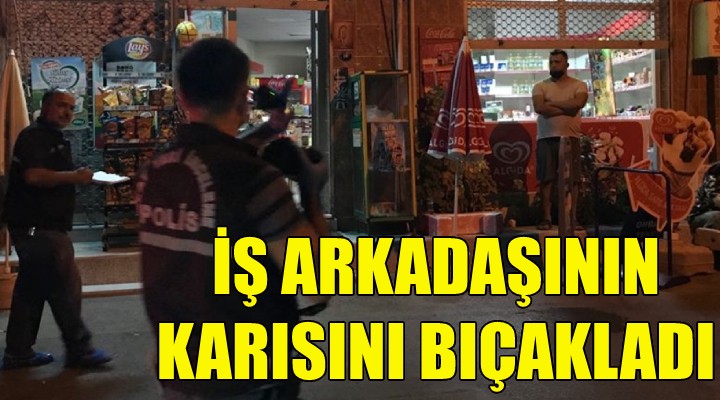 Olay, dün ak?am saat 23.00 s?ralar?nda Ye?ilova Mahallesi 4109 Sokak'ta meydana geldi. ?ddiaya göre, aralar?nda önceden husumet bulunan Ça?r? S. (20) ile i? arkada?? ?smail N. aras?nda bir markette tart??ma ç?kt?. Tart??ma k?sa sürede büyüyerek kavgaya dönü?tü. Kavga s?ras?nda b?çak çeken Ça?r? S., ?smail N'nin e?i Ne?e N.'yi karn?ndan b?çaklad?. B?çak darbesi ile yaralanan kad?n kanlar içinde yere y???l?rken, ?üpheli ise olay yerinden kaçt?. ?hbar üzerine, olay yerine sa?l?k ve polis ekibi sevk edildi. Sa?l?k ekiplerince ilk müdahalesi yap?lan Ne?e N. ambulansla Ege Üniversitesi T?p Fakültesi Hastanesi'ne kald?r?ld?. Tedavi alt?na al?nan yaral? kad?n?n hayati tehlikesinin bulundu?u ö?renildi.
