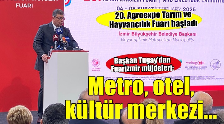 Ba?kan Tugay Gaziemir Fuarizmir'in geli?imi için de müjde vererek, "Burada güzel bir fuar ortam?nday?z. Birkaç y?l içerisinde kar??daki alanda otel in?a edece?iz . Kongre merkezi ile beraber. Kongre merkezi ile otel fuar? güçlendiren, kat?l?mc?lara hizmet veren önemli bir yer olacak. Buca Metrosu'nun buraya kadar gelmesini sa?layaca??z. Uzun vadede de?il. Birkaç sene içerisinde olacak. Metro ula??m?n? da sa?lam?? olaca??z. Bunlar fuar?m?z? güçlendirecek. Fuara katk? veren herkese ayr? ayr? te?ekkür ediyorum" dedi.