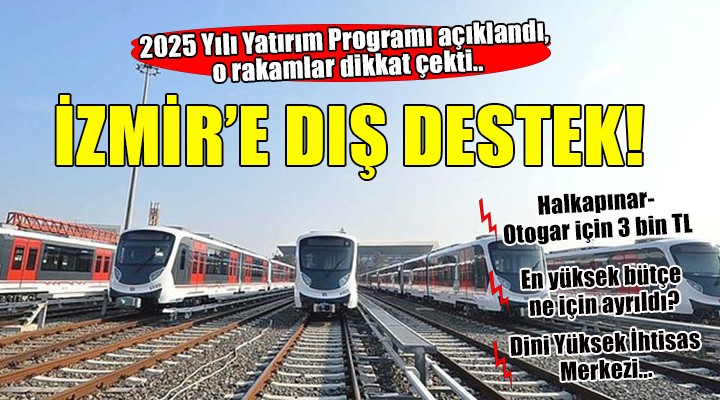Yat?r?m program?nda ?zmir'in büyük montanl? projeleri için d?? kredi finansmanlar? da dikkat çekti. 24 milyar 741 milyon 383 bin TL proje maliyeti öngürülen Üçyol Buca Metro Hatt? için 18 milyar 696 milyon 34 bin TL d?? kredi finansman? yat?r?m program?nda yer ald?.