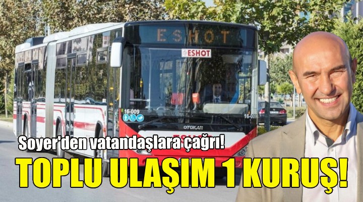 ?zmir Büyük?ehir Belediye Ba?kan? Tunç Soyer, bayram nedeniyle kentte toplu ula??m?n 1 kuru? olaca??n? duyurdu.