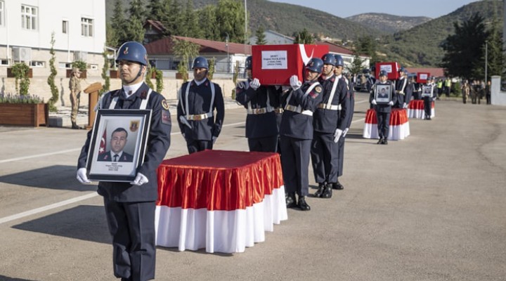 Tunceli ?l Jandarma Komutanl???nda gerçekle?tirilen törende, ?ehitler Uzman Çavu? Mehmet Aykanat, Uzman Çavu? Orhan Burak Büyükçayl?, Uzman Onba?? Do?an K?z?late?’in Türk bayra??na sar?l? naa?? alana getirilerek katafalka konuldu.