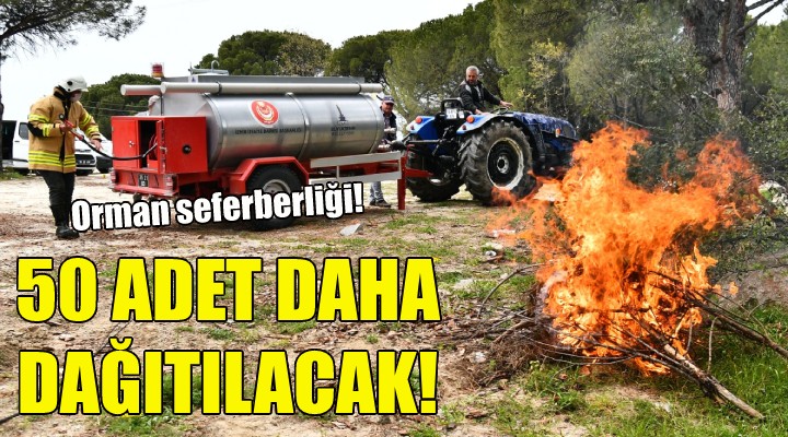 ?zmir Büyük?ehir Belediyesi ba?latt??? orman seferberli?i kapsam?nda yang?n söndürme tankeri almaya devam ediyor. Nisan ay?nda orman köylerine 3 ton su kapasiteli 60 adet yang?na ilk müdahale amaçl? hortum ve römork tipi su tankeri da??tan Büyük?ehir, 50 adet tanker ve içinde su kazan?, pompa ve hortum bulunan be? adet yang?n söndürme setiyle ilgili al?m sürecini de ba?latt?. ?ehir merkezine uzak orman köylerinin sakinleri art?k yang?na daha etkili bir ?ekilde ilk müdahaleyi yapabilecek. Böylece itfaiye ekipleri gelene kadar yang?n?n büyümesi engellenebilecek. Tankerlerin kullan?m? için daha önce oldu?u gibi köylülere yang?n e?itimi de verilecek.