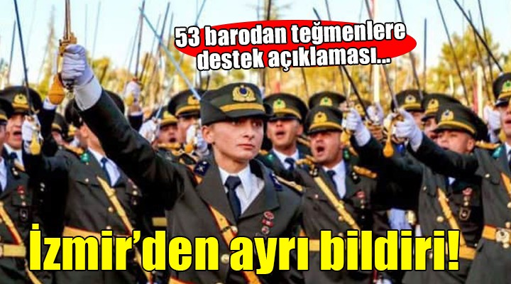 SONKALE?ZM?R-Ankara Barosu, "Mustafa Kemal'in askerleriyiz" slogan? atarak k?l?çl? yemin eden te?menlerden Ebru Ero?lu ve ?zzet Talip Akarsu'nun TSK'dan ay?rma cezas? verilmesi amac?yla Yüksek Disiplin Kurulu'na sevk edilmelerine tepki amac?yla bir bildiri yay?nlad?. 53 baronun imza att??? söz konusu bildiride ?zmir Barosu yer almad?.