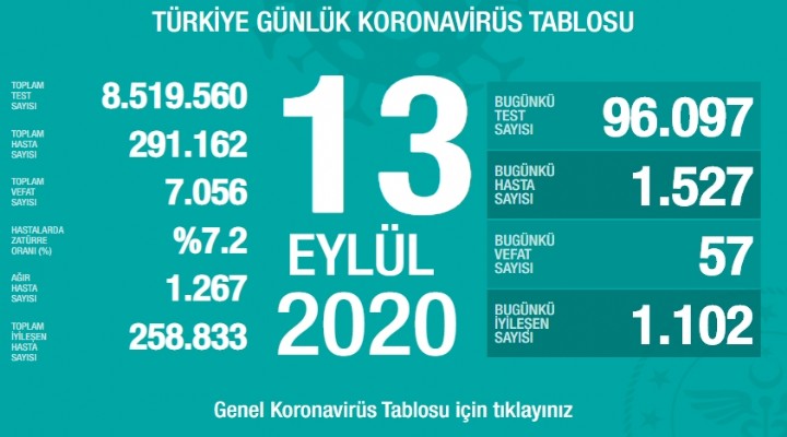 Sa?l?k Bakan? Fahrettin Koca ''57 CAN kayb?, 1.527 yeni hasta. Virüs sevdiklerimizi bizden ay?r?yor. Bu gidi?e dur diyecek olan Birlik ve Beraberlik içinde mücadeledir. TEDB?Rde B?RL?K olal?m virüse f?rsat vermeyelim.'' ifadelerini kulland?