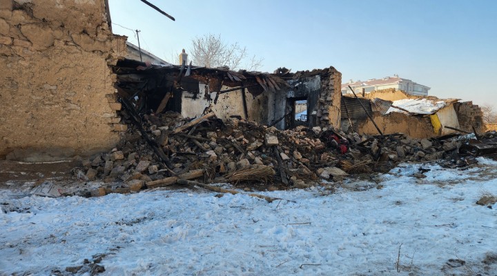 ?tfaiye ekiplerinin yang?na müdahalesi s?ras?nda, evin çat? kat? çöktü. Söndürme çal??malar?n?n ard?ndan, olay yerine gelen i? makineleriyle evin enkaz? kald?r?ld?.
