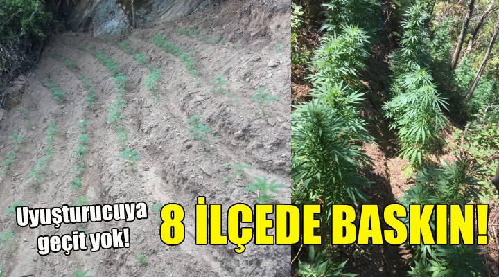 Bergama, Beyda?, Güzelbahçe, Karaba?lar, Kiraz, Ödemi?, Tire ve Torbal? ilçelerinde yap?lan operasyonlarda 48 ki?i gözalt?na al?nd?. Adreslerde yap?lan aramalarda 51 bin 305 gram kubar esrar, 125 gram metamfetamin, 903 adet sentetik hap, 20 uyu?turucu içme aparat? ile ormanl?k araziye dikili vaziyette 6 bin 379 kök kenevir bitkisi ele geçirildi.