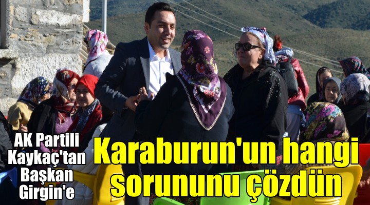 Mevcut Ba?kan ?lkay Girgin Erdo?an’a sora sora proje haz?rlatt?klar?n? ifade eden Kaykaç, "Bugüne kadar yap?lan çal??malar" diye halka sunulan faaliyetlerin ise Karaburun için makyajdan öteye gidememi? oldu?unu vurgulad?. ?lkay Girgin Erdo?an ve ekibinin görevde olduklar? 5 y?l boyunca ilçenin ve halk?n temel sorunlar?ndan uzak, “vitrin” belediyecili?i yapt???n? belirten Kaykaç, “Altyap?, kanalizasyon, ha?ere ile mücadele, sa?l?k, e?itim ve ula??m gibi temel ve öncelikli sorunlardan uzak bir belediyecilik, ilçenin bu sorunlar?n? ne yaz?k ki kronik hale getirmi?tir. Halk?m?z?n teveccühleri ile göreve geldi?imizde önceli?imiz Karaburun'un gerçek sorunlar?n?n çözülmesi için daha kapsaml? ve temel sorunlara odakl? bir belediyecilik hizmeti sa?lamak olacak” dedi.