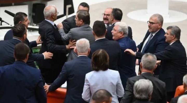 At??man?n ard?ndan AK Partili ve CHP'li milletvekilleri aya?a kalkarak birbirlerine laf att?. Genel Kurul'da tansiyonun yükselmesi üzerine TBMM Ba?kanvekili Tekin Bingöl oturuma ara verdi.