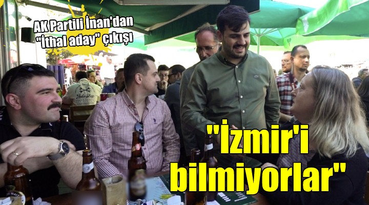 ?nan, CHP'nin ?zmir milletvekili adaylar?n? ele?tirirken, "Kar??m?zdakilerin ?zmirlilere de?er gördükleri isimlere bak?n. Hiçbirinin ?zmir ve Çi?li ile yak?ndan alakas? yok. Gitmi?ler di?er yerlerden bu kentte ithal aday getirmi?ler. Ya siz Çi?li'nin, Menemen'in, Bayrakl?'n?n Cengizhan Mahallesi'nin sokaklar?n?n bilmezsiniz. CHP’li Milletvekillerine bu kentti tan?t?p, çay ikram edelim. Ama arkada?lar, bizim de i?imiz, vaktimizden çok. Bu seçimde AK Partiye, milletvekillerimize ve Türkiye'nin ilerleyi?ine oy verin." ?eklinde konu?tu.