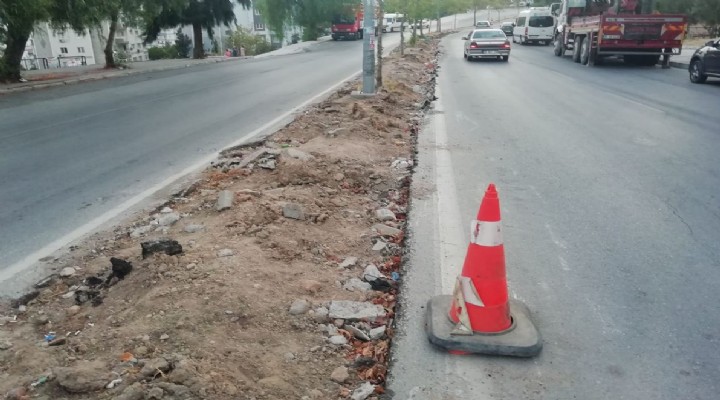?zmir Büyük?ehir Belediyesi’ne ba?l? ?ZBETON taraf?ndan, Çi?li ?lçesi Evka 5 Mahallesi'de ba?lat?lan kald?r?m ve orta refüj yenileme çal??mas? yar?m b?rak?ld???n? öne süren AK Parti Çi?li ?lçe Ba?kan? Sedat Karatekin, "Yakla??k 4 ayd?r Evka 5 Mahallemizin bir bölümü ?antiye gibi durmakta. Yenilemeye çal??t?klar? bölgedeki kald?r?m?n hepsi eski ve y?pranm??t?. ??e ba?lad?klar?nda hepsini yenileyeceklerini sand?k ama bir k?sm?n? yenilemeye ba?lad?lar. Ama o yapmaya çal??t?klar? bir bölümü de ellerine yüzlerine bula?t?rd?lar. Yar?m b?rak?p gittiler. ?uan o bölge ?antiye gibi. Vatanda? ne kald?r?m? kullanabiliyor ne de güvenli bir geçi? yapabiliyor. Yap?lmayan kald?r?mlarda birer metreye yak?n kablolar?n geçti?i kuyular var ve kapaklar? da aç?k. Allah korusun çocuklar oyun oynarken oradan geçerken içine dü?ebilir. Yakla??k 4 ay oldu yar?m b?rak?lan alan? tamamlamak için ne gelen var ne de giden. ?lçe o kadar sahipsiz ki ?lçe Belediyesi taraf?ndan da bir ses ç?km?yor." dedi.
