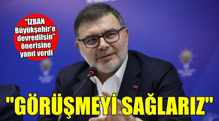 "Ayr?ca ilgili kurum temsilcileriyle yapt???m?z görü?melerde, ?zmir Büyük?ehir Belediyesi taraf?ndan gerek ba?kan gerek yönetim kademesi taraf?ndan herhangi bir görü?me talebinin iletilmedi?ini ö?rendik. Konu bas?nda payla??m yaparak, niyet beyan?nda bulunulacak bir konu olmaktan ziyade teknik, idari ve mali yönleri olan bir konudur. Haliyle partizanca yakla??m sergilenecek bir taraf? da zaten bulunmamaktad?r. Say?n Cemil Tugay, kapsaml? ?ekilde taleplerinin ne oldu?unu belirten bir dosya haz?rlat?r ve taraf?ma iletirse, ben de kendisiyle birlikte AK Parti ?l Ba?kan? olarak, Bakanl?k ve Genel Müdürlükler nezdinde gereken görü?meleri sa?layaca??m? ve yan?nda olaca??m? söylüyorum. Biz, ?zmir için verdi?imiz sözün arkas?nday?z. Kendilerinden de ayn? yakla??m? bekliyorum. Tüm bunlarla birlikte; ?zmir Büyük?ehir Belediyesi’nin  önceki y?llardan farkl? olarak sermaye art?r?mlar?na kat?lmas? ve ?ZBAN trenlerinin borçlar?n?n ödenmesi için ortakl??? oran?nda mali destek sunmas?n?n ?ZBAN’?n sürdürülebilirli?i için bir zorunluluk oldu?unu da hat?rlatmak isterim.''