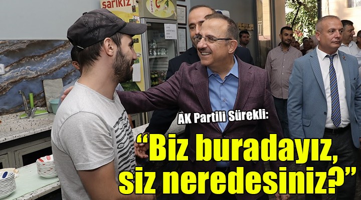 ?zmir’in yerel idare anlam?nda en kötü dönemini ya?ad???n? öne süren AK Parti ?zmir ?l Ba?kan? Kerem Ali Sürekli ?öyle konu?tu; “Bakt?lar ki kentsel dönü?üm, alt yap?, trafik ma?duriyetinde b?çak kemi?e dayanm??, sokaklardan ellerini ayaklar?n? çektiler. ?imdi ?zmir’i ve Türkiye’yi salonlardan dizayn etmeye çal???yorlar. Masa ba?lar?nda kürsülerde ahkâm kesiyorlar. Neden? Çünkü soka?a ç?ksalar, kendi üyeleri ve seçmenlerinin dahi tepkisiyle kar??la?acaklar. Çünkü ?zmirli ne olursa olsun hakk?n? arar. Sorar... ‘Y?llard?r kentsel dönü?üm için ne yapt?n?z?’ diye sorar. ‘Pencerelerimizi açam?yoruz. Bu pis kokunun sonu nereye varacak?’ diye sorar! ?zmirli çekinmez, ‘bizi ma?dur ettiniz’ der! Nitekim, CHP Genel Ba?kan?, vekili de oldu?u ?zmir’de bu sorun ve sorunlarla daha önce muhatap oldu. Karaba?lar dönü?üm ma?durlar?na, ‘Gidin müteahhit bulun!’ diyerek, sorumluluktan kaçmakta tarih yazd?lar. Dünyan?n paras?n? verip ald?klar? ikinci el at?k ayr??t?rma tesisinin kurdelesini kesmek i? de?il! Ayn? yeme?i ?s?t?p ?s?t?p ayn? yemekleri ?zmirlinin önüne koyarak göz boyayamazlar. Bak?ld???nda görülüyor. Ço?u önceki dönem ba?kan? Kocao?lu’nun yapt??? i?ler. Reklam? bol, göstermelik temel atma törenleri ve aç?l??lardan, konserlerden ba?ka bir faaliyet bilmiyorlar. Bu haldelerken ?zmir’in sokaklar?n? ad?mlamaktan, vatanda?la yüz yüze gelmekten korkarlarken bize ahkâm kesemezler. Yoksa sorar?z; biz buraday?z, onlar nerede?”