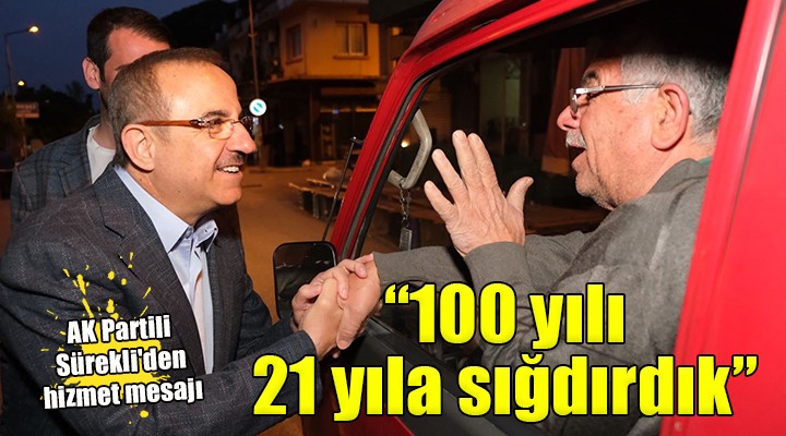 AK Parti’nin 21 y?ll?k iktidar? boyunca Türkiye’ye dev eserler kazand?rd???n? söyleyen Sürekli, “Eser ve hizmet siyasetimizle 100 y?l? 21 y?la s??d?rd?k. Hiç kimseyi ihmal etmeden, herkesin ihtiyaçlar? do?rultusunda sosyal devlet anlay???n? güçlü k?larak hareket ettik. Ülkemizin her noktas?n? say?s?z eserle donatt?k, gitmedik köy, ayak basmad?k sokak b?rakmad?k. Milletimizin yan?nda olduk, derdiyle dertlendik. E?itimden sa?l??a, turizmden savunmaya, teknolojiden tar?ma kadar farkl? alanlarda tarih yazd?k. Yat?r?m ve desteklerde nice rekorlar k?rd?k. Hayali kurulamayan projeleri hayata geçirdik. Aradan geçen zamana ra?men heyecan?m?zdan bir gram bile azalma olmad?. Ayn? co?ku ve heyecanla milletimiz için ülkemiz için çal??maya devam edece?iz. Bizleri samimiyetle güler yüzle kar??layan hem?ehrilerimizin destekleri var oldukça bizlere durmak da yorulmak da yok. Aziz milletimizin deste?iyle 14 May?s’ta destan yazacak, kazan?mlar?m?z? koruyacak, Türkiye Yüzy?l?’n? in?a etmek üzere kollar?m?z? s?vayaca??z” dedi.
