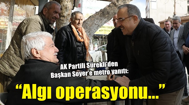 AK Parti ?zmir ?l Ba?kan? Kerem Ali Sürekli Türkiye Yüzy?l? Bulu?malar? kapsam?nda Bornova’dayd?. P?narba??’nda Esnaf Te?kilat? Temsilcileri ile bir araya gelen Ba?kan Sürekli, esnaflar? da i? yerlerinde ziyaret etti. Görü?melerinde, hükümetin esnaf desteklerini payla?an ve sorunlar? dinleyen Sürekli’nin bir di?er gündem maddesi CHP ?zmir’in ve Büyük?ehir Belediye Ba?kan? Soyer’in, hükümetin ?zmir’de ula??m yat?r?m? olmad??? yönündeki aç?klamalar? oldu. Soyer’in bir metre metrosu yok ç?k???na da de?inen Sürekli; “Bu, apaç?k inkâr ve yok saymad?r. ?ZBAN örne?i, merkezi idarenin ?zmir’e kazand?rd??? dev yat?r?mlardan biri olarak tüm gerçekli?i ile ortada dururken, bu söylemlerle ancak suni gündemler yarat?p zaman kazanabilirler. Alg? operasyonlar? da bir yere kadar i?ler.” diye konu?tu.