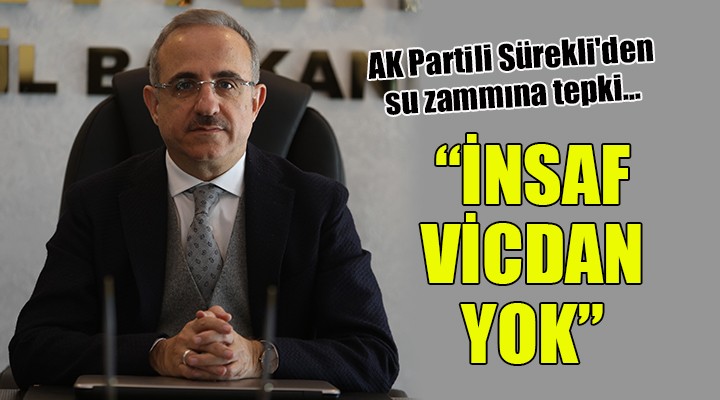 SONKALE?ZM?R-AK Parti ?zmir ?l Ba?kan? Kerem Ali Sürekli, ?zmir Büyük?ehir Belediyesi taraf?ndan 1 Ocak 2021'den geçerli olmak üzere suyun metreküp fiyat?na yüzde 15 oran?nda zam yap?lmas?na tepki gösterdi. Sosyal medya hesab?ndan aç?klamada bulunan Sürekli, "CHP’li ?zmir Büyük?ehir Belediyesi suya zam yapmaya doymuyor! ?zmirli, suyu 18 ay içinde toplamda yüzde 70 yak?n zaml? kullanmaya ba?lad?. Ocak ve Eylül zamlar?n?n ard?ndan yüzde 15 zam kararlar?n?n vicdanla, insafla uzaktan yak?ndan ilgisi yok.