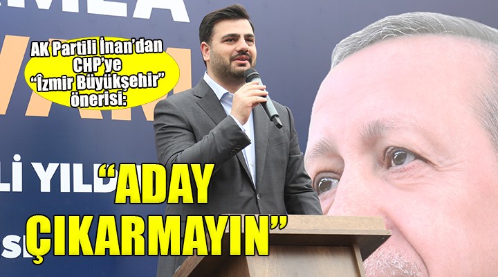 AK Parti ?zmir Milletvekili Eyyüp Kadir ?nan, sosyal medya hesab?ndan yapt??? aç?klama ile CHP'ye ?zmir önerisinde bulundu. ?nan, CHP'nin ?zmir'e özür borcu oldu?unu söyleyerek Büyük?ehir için aday ç?karmamas? gerekti?ini belirtti. ?nan aç?klamas?nda ?unlar? kaydetti: