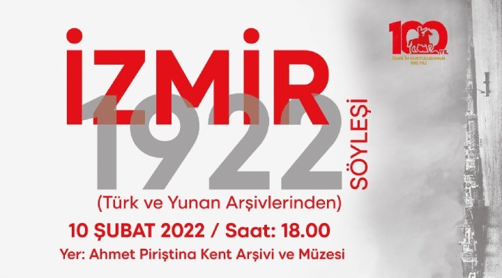 A?zmir Büyük?ehir Belediyesi Ahmet Piri?tina Kent Ar?ivi ve Müzesi’nde (AP?KAM) ?zmir’in kurtulu?unun 100. y?l? etkinlikleri kapsam?nda “100. Y?l Söyle?ileri” ba?l?yor. 10 ?ubat Per?embe günü saat 18.00’de yap?lacak ilk söyle?ide 1922 y?l?n?n ?zmir’i Türk ve Yunan ar?ivlerinden belgelere dayanarak anlat?lacak.