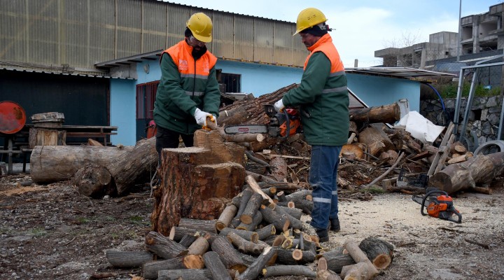 Sosyal belediyecilik alan?nda ya?ama geçirdi?i örnek çal??malarla dikkat çeken Ku?adas? Belediyesi, ihtiyaç sahibi ki?i ve ailelere destek olmak için her f?rsat? de?erlendiriyor. Bu kapsamda Kas?m-Mart aylar? aras?nda budanan a?açlardan elde edilen dallar ile kurumu? a?açlar?n kök ve gövdeleri düzenli olarak toplan?yor. Kamyonlara yüklenen a?aç at?klar?, Park ve Bahçeler Müdürlü?ü’nün Kad?nlar Denizi Mahallesi’nde bulunan çal??ma merkezine götürülerek sobaya s??acak boyutlarda kesiliyor. K??l?k odun haline geldikten sonra paketlenerek Sosyal Yard?m ??leri Müdürlü?ü’nün belirledi?i adreslere teslim ediliyor.