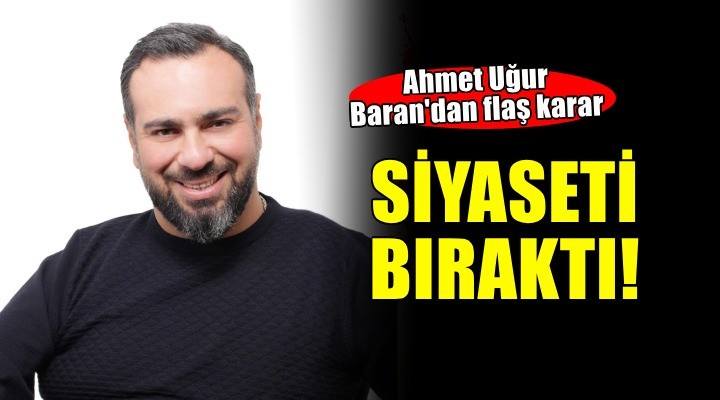 SONKALE?ZM?R-Ahmet U?ur Baran, yakla??k 20 y?ll?k siyasi kariyerine nokta koydu. Baran, sa?l?k problemleri ve ki?isel nedenlerle yeni bir sayfa açmak istedi?ini belirtti. Ahmet U?ur Baran karar?n? sosyal medya hesab?ndan yapt??? ?u aç?klama ile duyurdu: