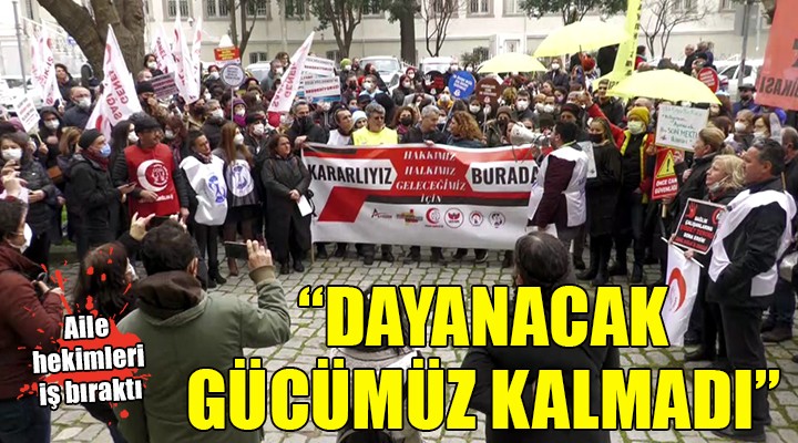 SONKALE?ZM?R- ?zmir Konak'ta ?l Sa?l?k Müdürlü?ü önünde toplanan aile hekimleri "Kararl?y?z, hakk?m?z, halk?m?z, gelece?imiz için buraday?z" yaz?l? pankart aç?p, "Bakan istifa", "Direne direne kazanaca??z", "Ceza ile yönetme, sabr?m?z? tüketme", "?iddet varsa biz yokuz" sloganlar? att?.