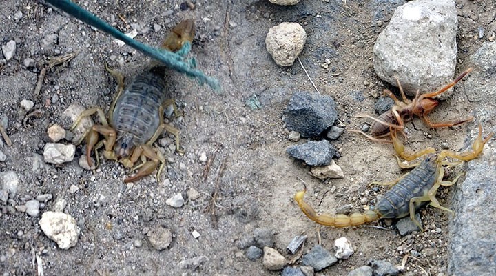 "Burada genelde kuyruklu akrep ve sar? k?z dedi?imiz böce?e benzeyen akrepler var. Bu kuyruklu akreplerin zehri kuyruklar?nda bulunur. Bu akreplerin evlere giren farkl? bir türü de var. Bu da sar? k?z dedi?imiz etçil türlerdir.