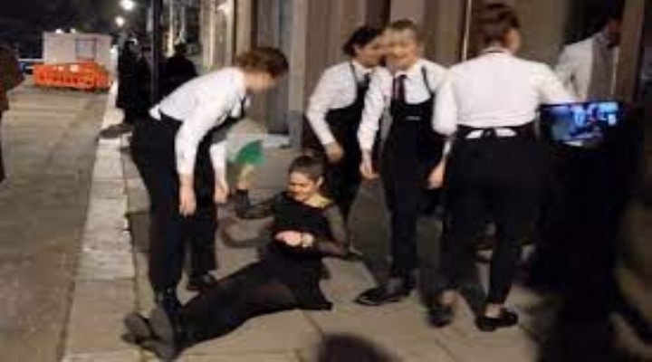 Sosyal medyada yay?nlanan bu anlarda, aktivistlerden birinin garsonlar taraf?ndan d??ar? at?ld??? görüldü.