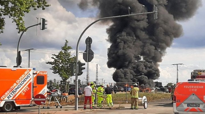 ?tfaiyeden yap?lan aç?klamaya göre, yerel saatle 14.53'de meydana gelen olayda 8 araç yand? ve so?utma i?lemleri devam ediyor.