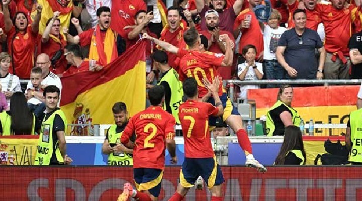 Almanya'da düzenlenen 2024 Avrupa Futbol ?ampiyonas? çeyrek finalinde ?spanya ile Almanya kar?? kar??ya geldi. Stuttgart Arena’da oynanan mücadelede ?ngiltere Futbol Federasyonu’ndan Anthony Taylor düdük çald?. Anthony Taylor’?n yard?mc?l?klar?n? ise Gary Beswick ile Adam Nunn üstlendi. ?spanya, normal süresi 1-1 sona eren kar??la?may? uzatmalarda buldu?u golle 2-1 kazand? ve ad?n? yar? finale yazd?rd?. ?spanya’ya yar? finali getiren golleri 51’inci dakikada Dani Olmo ve 119’uncu dakikada Mikel Merino kaydetti. Almanya’n?n tek golü ise 89’uncu dakikada Florian Wirtz’den geldi. Öte yandan kar??la?man?n 120+6’nc? dakikas?nda ?spanya’da Dani Carvajal k?rm?z? kartla oyundan at?ld?. Bu sonucun ard?ndan ?spanya ilk yar? finalist olurken, Almanya ise turnuvaya veda etti.