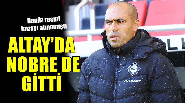 SONKALE?ZM?R-Altay yönetimi, 15 Ocak'ta teknik direktörlü?e getirildi?ini aç?klad??? Mert Nobre ile yollar?n? ay?rd?. Mustafa Denizli'nin ayr?lmas?n?n ard?ndan tak?m?n ba??na getirilen Nobre'nin yönetimindeki Altay, 12 günlük süreçte Süper Lig'de Alanyaspor (0-1), Fenerbahçe (2-1) ve Konyaspor'a (0-1) ma?lup oldu. Nobre, yard?mc? antrenörlü?ünü yapt??? Denizli'nin fesih i?lemleri tamamlanamad??? için resmi sözle?me imzalayamam??t?.
