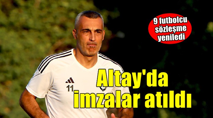 3'üncü Lig 4'üncü Grup'ta sezonun ilk haftas?nda pazar günü deplasmanda U?akspor'la kar??la?acak Altay'da yönetim toplam 9 futbolcu ile yeni sözle?me imzalad?. Siyah-beyazl?larda Ali K?z?lkuyu, Onur Efe, Özgür Özkaya, Ceyhun Gülselam'la 1'er y?ll?k, Ege Parmak ve Murat Uluç'la 2 y?ll?k yeni kontrat yap?ld?. Amatör lisansla forma giyen Salih Oktay, Mehmet Nur Kaymaz ve Emre Tangeldi de yine amatör statüde 1 y?l mukavele uzatt?.