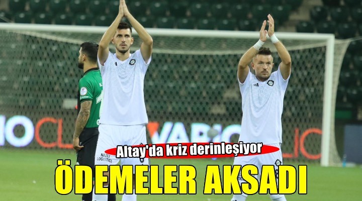 Yönetim futbolculara 20 Ocak'ta ödeme yap?laca??n? iletmi?ti, ancak Altayl? oyunculara yine ödeme yap?lamad??? dile getirildi. ?zmir ekibinde kulübe ihtarname gönderen Özgür, Ceyhun, Sefa, Ozan, Ege ve Mert'in yan? s?ra geçmi? y?llardan yüklü alaca?? olan Deniz Kadah'?n da ödeme bekledi?i bildirildi. Bu oyuncular?n tak?mda kal?p kalmayacaklar? belirsizli?ini koruyor.