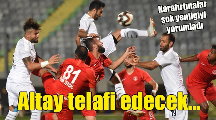 Karaf?rt?nalar ?öyle devam etti: "?kinci yar?da tak?m?n gösterdi?i reaksiyon iyiydi. ?lk yar?da 11-11 oynasak durum pek de?i?mezdi. Ancak ikinci yar?daki oyunumuzla 11'e 11 olsak durum çok farkl? olabilirdi. Leandrinho'nun oyuna girmesinden sonra daha etkili olduk. Leandrihno bize çok önemli katk? sa?layacak. Her ?eye ra?men bu maç? geride b?rakmam?z gerek. Telafisini yapaca??z" dedi. Bu arada siyah-beyazl? taraftarlar sosyal medyada kaleci Ayd?n Ba?'?n performans?n? ele?tirirken yönetimden kaleci transferi istedi. Cihan Topalo?lu, Ayd?n ve Emre Koyuncu'yu bünyesinde bar?nd?ran Altay'da yönetimin ise kaleci transferi dü?ünmedi?i ö?renildi.