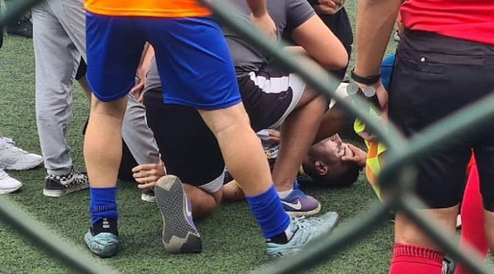 Adnan Menderes Stadyumu’nda oynanan kar??la?man?n ilk yar?s?nda taç at??? yaparken bilinçsiz ?ekilde bir anda yere y???lan 29 ya??ndaki futbolcuya ilk müdahaleyi saha kenar?ndaki sa?l?k görevlisi Bülent Dönmez yapt?.
