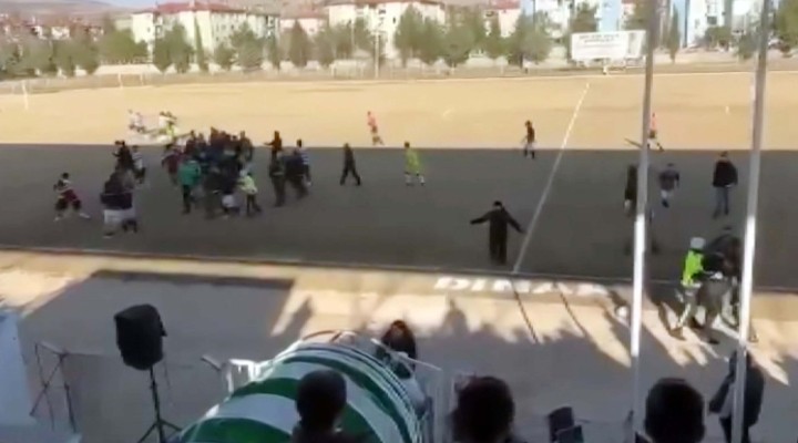 Sahada ya?anan kavgay? tribündeki taraftar telefon kameras?yla görüntüledi. Görüntülerde futbolcular?n birbirine tekme ve yumruk atmas? sonras?nda ya?anan arbede ve polis ile yöneticilerin ayr?ma çabas? yer ald?.