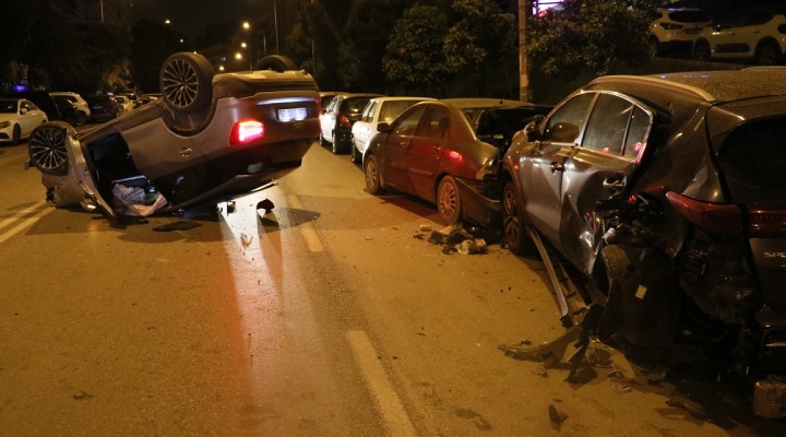 Kaza, saat 01.30 s?ralar?nda ?nönü Caddesi üzerinde meydana geldi. Eren D. yönetimindeki 35 THS 35 plakal? cip, sürücüsünün direksiyon hakimiyetini kaybetmesi sonucu park halindeki 09 AEH 404 plakal? cipe çarpt?ktan sonra takla att?. Park halindeki cip ise çarpman?n etkisiyle savrularak önünde bulunan yine park halindeki 35 JL 738 plakal? otomobile çarpt?.