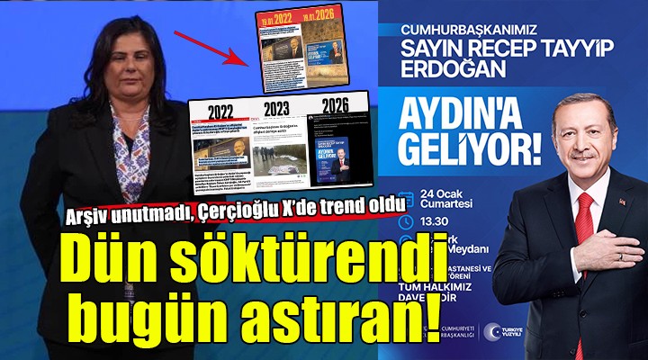 Bir dönem “siyasi içerik” bahanesiyle Cumhurba?kan? ve AK Parti Genel Ba?kan? Recep Tayyip Erdo?an’?n Ayd?n’a geli?ine ait afi?leri söktüren, billboardlar? kald?rtan Özlem Çerçio?lu, bugün bamba?ka bir rolde kar??m?za geldi. O gün “yasak” olan, bugün “normal”; o gün “olmaz” denilen, bugün “as?l?r” hale geldi.
