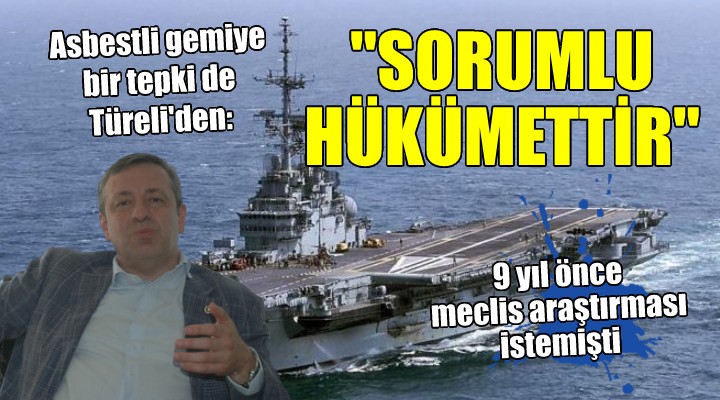 CHP Ekonomi Masas? üyesi ve 24. Dönem ?zmir Milletvekili Rahmi A?k?n Türeli, bünyesinde yüzlerce ton asbest bar?nd?rd??? iddia edilen ve ?zmir'de sökümü için izin verilen Brezilya donanmas?na ait Nae Sao Paulo adl? sava? gemisiyle ilgili Çevre, ?ehircilik ve ?klim De?i?ikli?i Bakanl???'na ça?r? yapt?. ANKA Haber Ajans?'na konu?an Türeli, "Çevre, ?ehircilik ve ?klim De?i?ikli?i Bakanl??? söz konusu gemiyle ilgili izinlerini derhal iptal etmelidir" dedi.