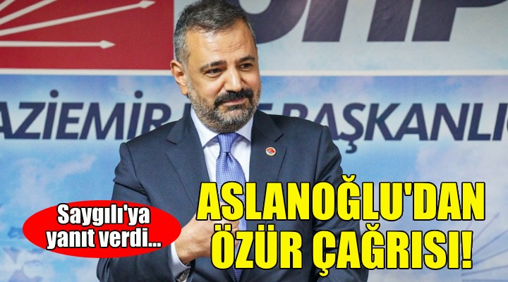 Aslano?lu mevkida??na “ ?zmirlilerden, haklar?n? hiçe sayd???n?z, proje finansmanlar?n? keyfinize göre bekletti?iniz için özür dileyin. Laf kalabal???yla kendi ay?b?n?z? örtebilece?inizi san?yorsan?z, ?zmirlileri hala tan?yamam??s?n?z demektir. Kendinizi komik duruma dü?ürmeyin, özür dileyin” sözleriyle cevap verdi.