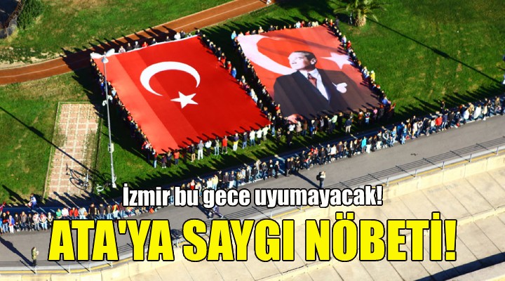 ?zmir Büyük?ehir Belediyesi ölümünün 84. y?l dönümünde ulu önder Mustafa Kemal Atatürk'ü anmak için sayg? nöbeti düzenliyor. Nöbet bu ak?am saat 21.05'ten 10 Kas?m 09.05'e kadar sürecek. Cumhuriyet Meydan?'nda tutulacak nöbet için özel ???kland?rmayla “1938 sonsuzluk sembolü” çizilecek. Sembolün pek çok noktas?nda ise 30 dakikal?k ve bir saatlik dönü?ümlerle sabaha kadar sayg? duru?unda bulunulacak.