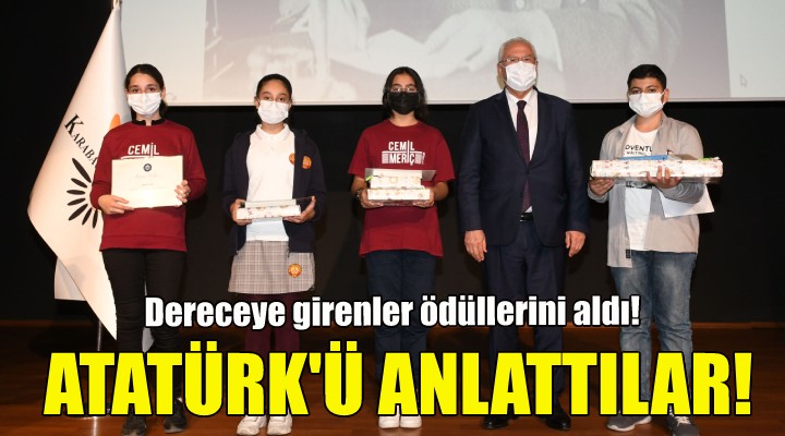 Yo?un ilgi gösterilen yar??mada birincili?i Eserkent Ortaokulu 7.s?n?f ö?rencisi Arda Keskin, ikincili?i Cemil Meriç Ortaokulu 7.s?n?f ö?rencisi Eylül Akkaya, üçüncülü?ü ise Misak-? Milli Ortaokulu 7.s?n?f ö?rencisi Ceren Altay elde etti. Dereceye girenlere ödülleri, ba?ar? sertifikalar? ve Nutuk Kitab?n? Karaba?lar Belediye Ba?kan? Muhittin Selvitopu verdi. Seçici Kurul özel ödülünü kazanan Cemil Meriç Ortaokulu 7.s?n?f ö?rencisi Cemre K?l?ç'?n hediyesi ve ba?ar? sertifikas?n? ise belediye meclis üyesi Servinaz Ömür takdim etti.