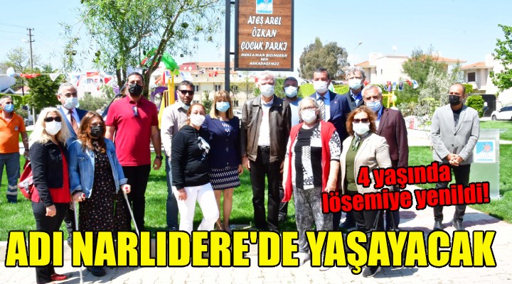 Aç?l??? gerçekle?tirilen parka, geçti?imiz haftalarda lösemi nedeniyle 4 ya??nda hayat?n? kaybeden Ate? Arel Özkan’?n ismi verildi. Aç?l?? töreninde Özkan Ailesi üyeleri ve mahalleliler de yer ald?. Parka, Ate? Arel Özkan ad?na yapt?r?lan tabela da as?ld?.