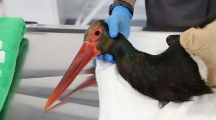 Daha sonra veteriner hekimlerin müdahalesi ile saçmalar ç?kart?ld?. Operasyonun ard?ndan leylek, rehabilitasyona al?nd?.