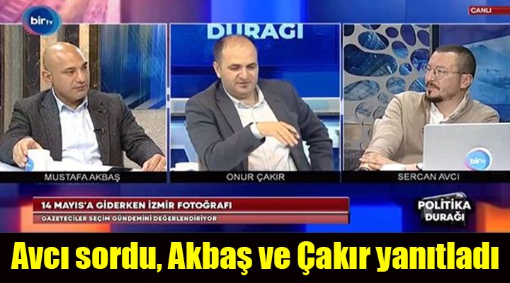 SONKALE?ZM?R- Bir TV’de yay?nlanan Politika Dura?? program?nda Gazeteci Sercan Avc?’n?n bu haftaki konuklar? gazeteciler Onur Çak?r ve Mustafa Akba? oldu. Akba? ve Çak?r, Avc?’n?n sorular?n? yan?tlarken, 14 May?s seçimlerine az bir süre kala ?zmir özelinde önemli tespitlerde bulundu.
