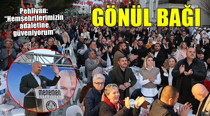 Ramazan ay? Menemen’de müjdelerle dolu iftar sofralar?nda birlik ve beraberlik içinde geçiyor. ?lk orucun ?ehit aileleri ve gazilerle aç?lmas?n?n ard?ndan, Halil Alkaya Kapal? Pazaryeri, Maltepe, Ulukent, Seyrek, Kent-2, Emiralem, Asarl?k, Türkelli, Kaz?mpa?a, Koyundere, U?ur Mumcu, Kas?mpa?a, Ah?h?d?r, Esatpa?a ve Mermerli geçen iftarlara Menemenliler yo?un ilgi gösterdi. Düzenlenen mahalle iftarlar?na 70 bine yak?n Menemenli kat?ld?. ?lahi ekibi, semah ve ?iirle kurulan Ramazan sofralar?nda, hem?ehrileriyle bulu?an Ba?kan Pehlivan, gitti?i her noktada müjdeleriyle ve aç?l??lar?yla Menemenlilerin yüzünü güldürdü.