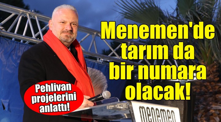 Ba?kan Pehlivan yeni dönemde tar?m ve hayvanc?l?k için yapacaklar? çal??malar? anlat?rken, "Ben bir çiftçi evlad? olarak tar?m?n cefas?n? iyi bilirim. Bu nedenle bu dönem 240 bin dekarl?k tar?m arazisi bulunan Menemen'de tar?msal faaliyetlerimizin daha ileri gidebilmesi için çok önemli çal??malar yapt?k, gelece?e yönelik projelerimizde haz?r. ?lçemize hayvan yemi fabrikas? kurup, ilk yemleri ücretsiz verece?iz. Büyük ve küçükba? hayvanlar?m?z?n a?? masraf?n? biz üstlenece?iz. ?çinde veterinerlik hizmetlerinin de yer ald??? hayvan pazar?m?z? hijyenik ve modern bir görünümle hizmete sokaca??z. Kompost tesisi kurarak üretece?imiz gübreyi, ücretsiz da??taca??z. Modern hal ve so?uk hava deposu kurarak, çiftçimizin ürününü daha sa?l?kl? ko?ullarda saklay?p, en kazançl? ?ekilde satmas?n? sa?layaca??z. Türkelli'ye su, toprak kal?nt? analiz laboratuvar? kuraca??z. 100 dönümde kendi fidanl???m?z? kurup, fidan?m?z? yeti?tirece?iz. Ayn? bölgeye kelebek müzesi ve tar?m akademisi kuraca??z. Kad?n üreticilerimiz için kad?n üretici pazar? kurarak, ekonomilerine katk? sunaca??z. Ayr?ca tüm bunlarla birlikte, yapt???m?z görü?meler do?rultusunda, ilçemize bir sulama baraj?n? kazand?rarak, topraktan en yüksek verimi alaca??z. Çünkü Menemen'de tarlada çal??an hem?ehrim, çünkü Menemen'de hayvan yeti?tiren karde?im her ?eyin en iyisini hak ediyor" diye konu?tu.